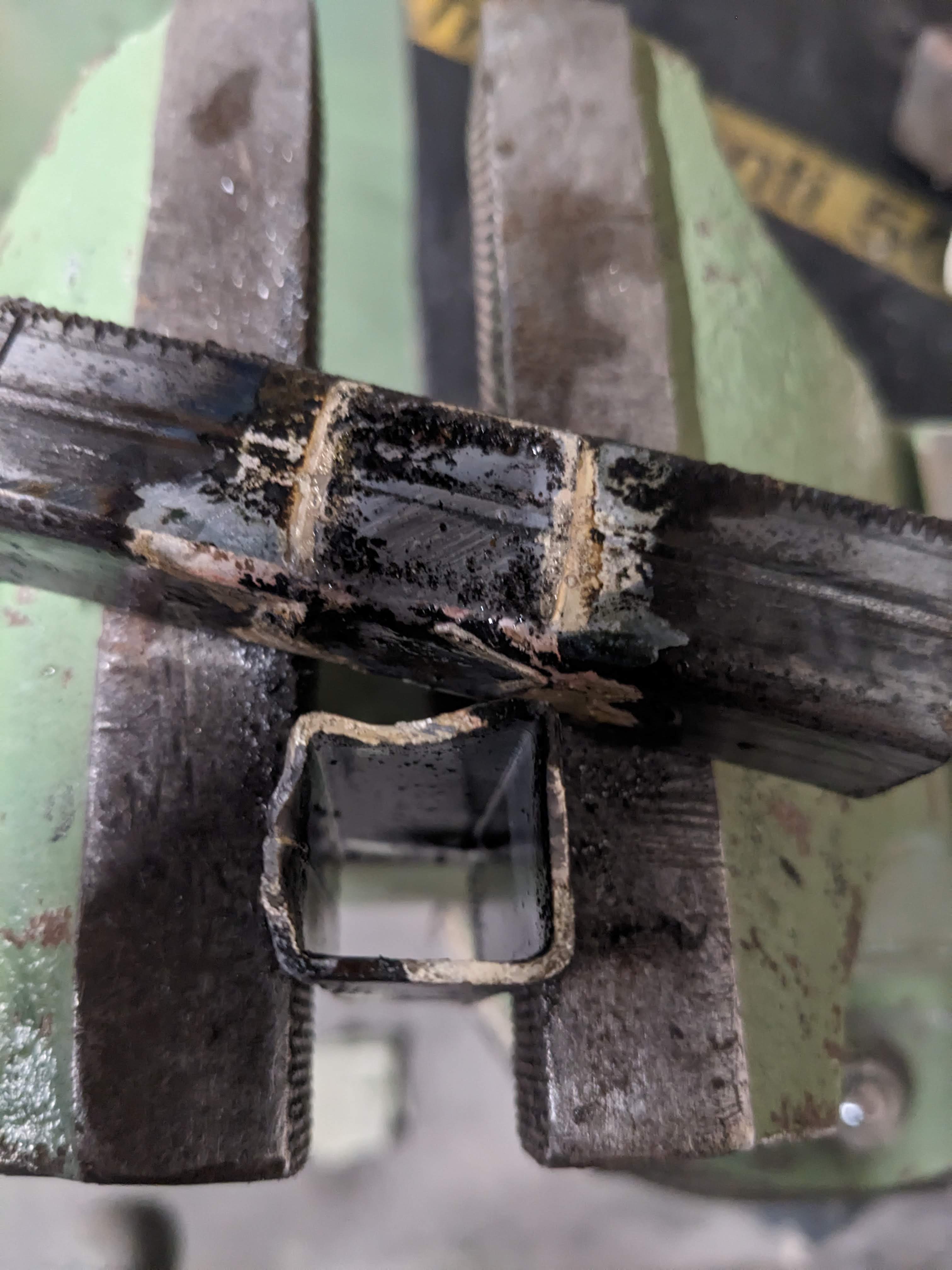 … hatten wir schon. Ja, eine einfache Bügelsäge ist etwas mühselig, tut’s aber erstmal. Stahl maschinell zu sägen ist teuer oder ungenau :-(