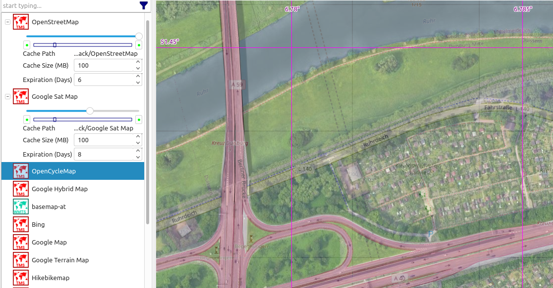 Wenn wir nur die Deckkraft der Satellitenkarten verringern, dann sehen wir einen Mix aus Strassen- und Satellitenkarte.