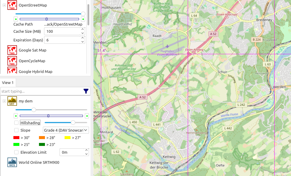 Wenn wir die Deckkraft der DEM Daten auf 100% stellen (oberer Regler nach rechts), sehen wir, dass DEM Daten eine Graukarte sind.